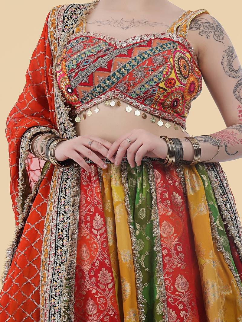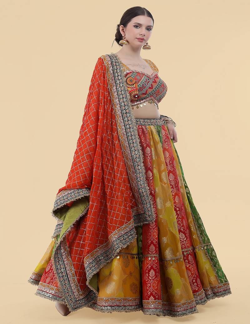 Multicolour banarsi georgette lehenga set with blouse and dupatta