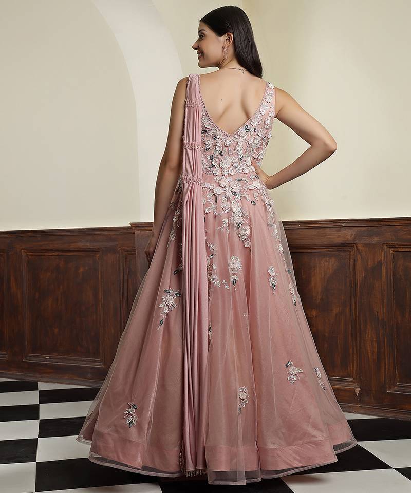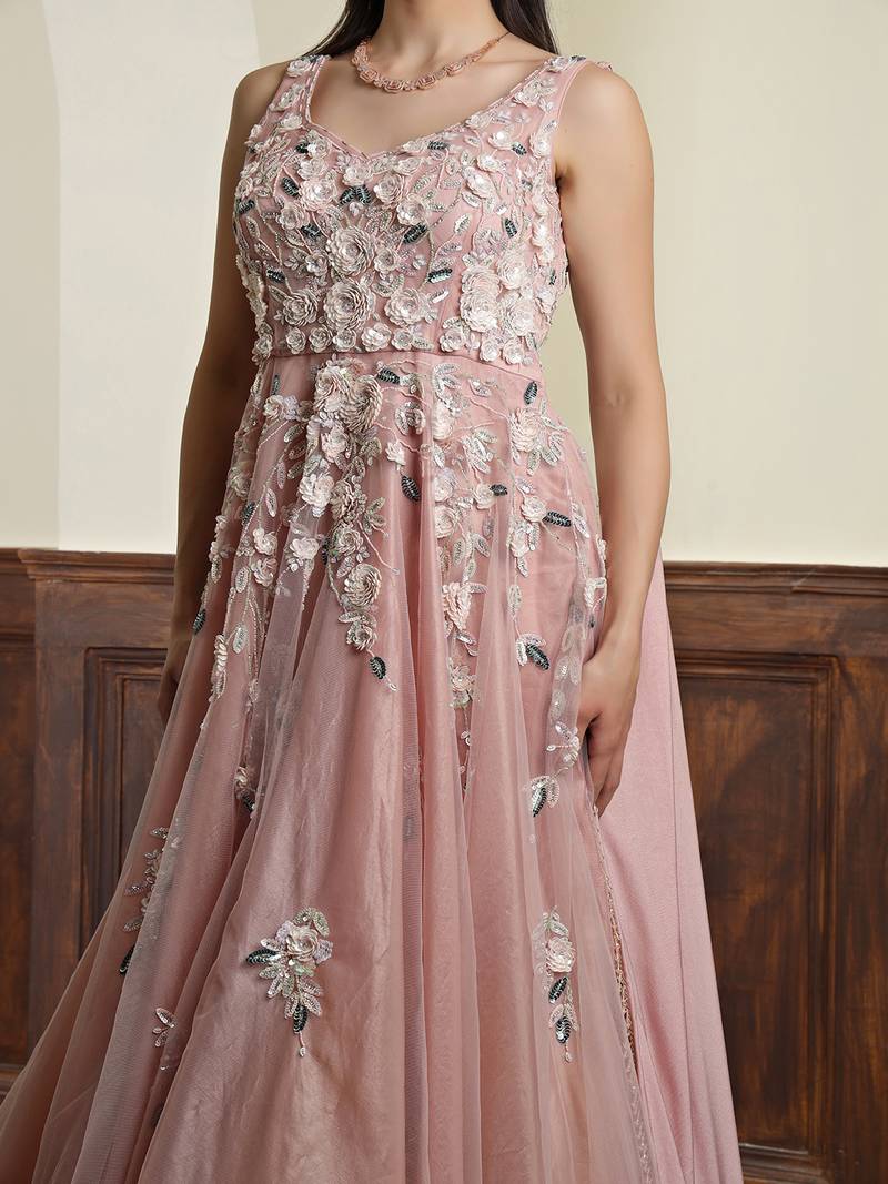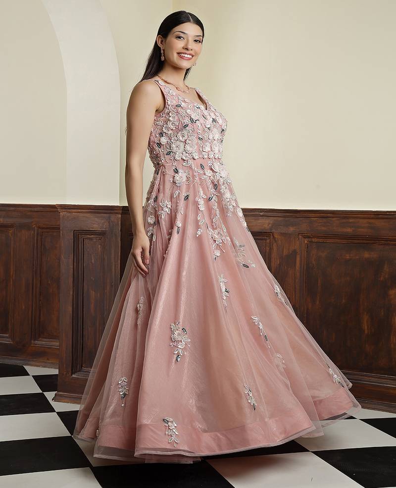 | Product Name | Nude Pink Net Gown With Opaque Sequins Work | |