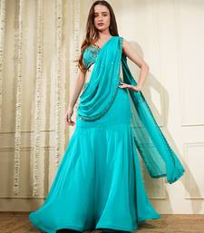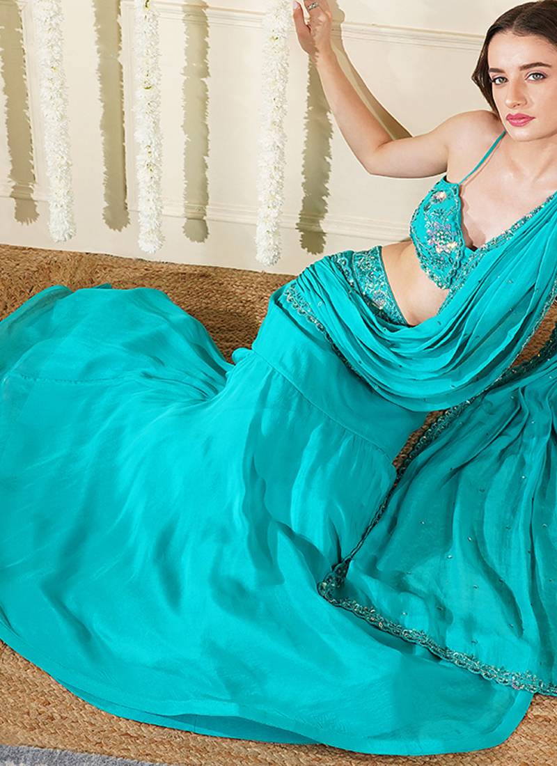 | Product Name | Teal Green Organza Drape Skirt Set With Hand Work Blouse And Dupatta | |