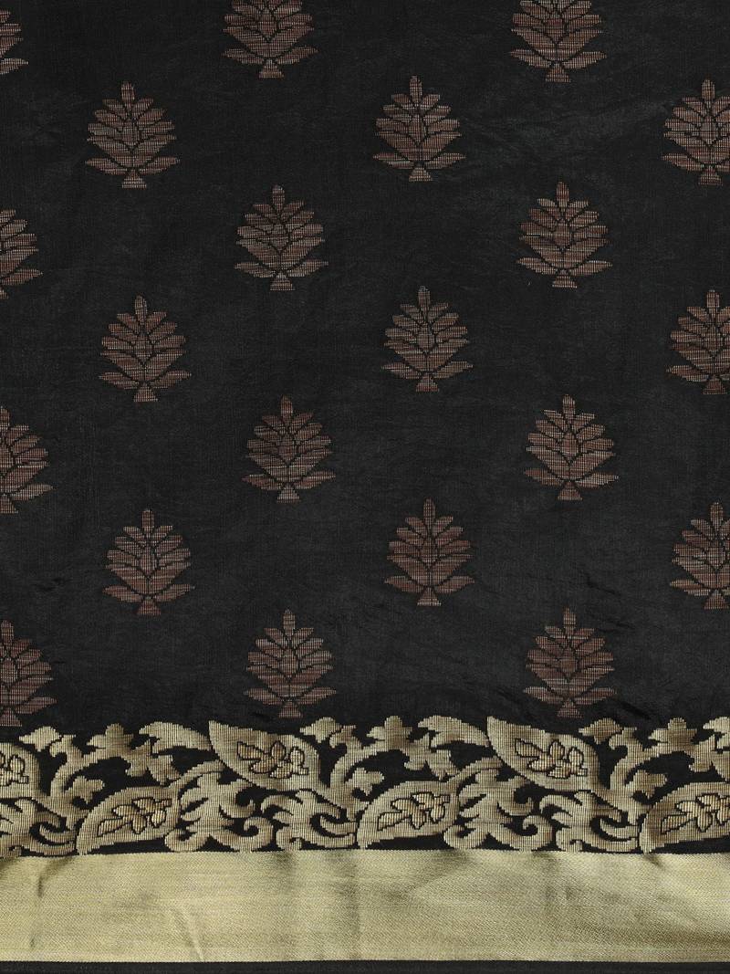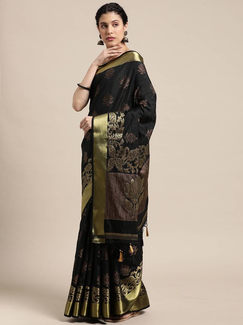 Black woven art silk saree with blouse