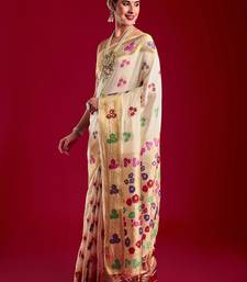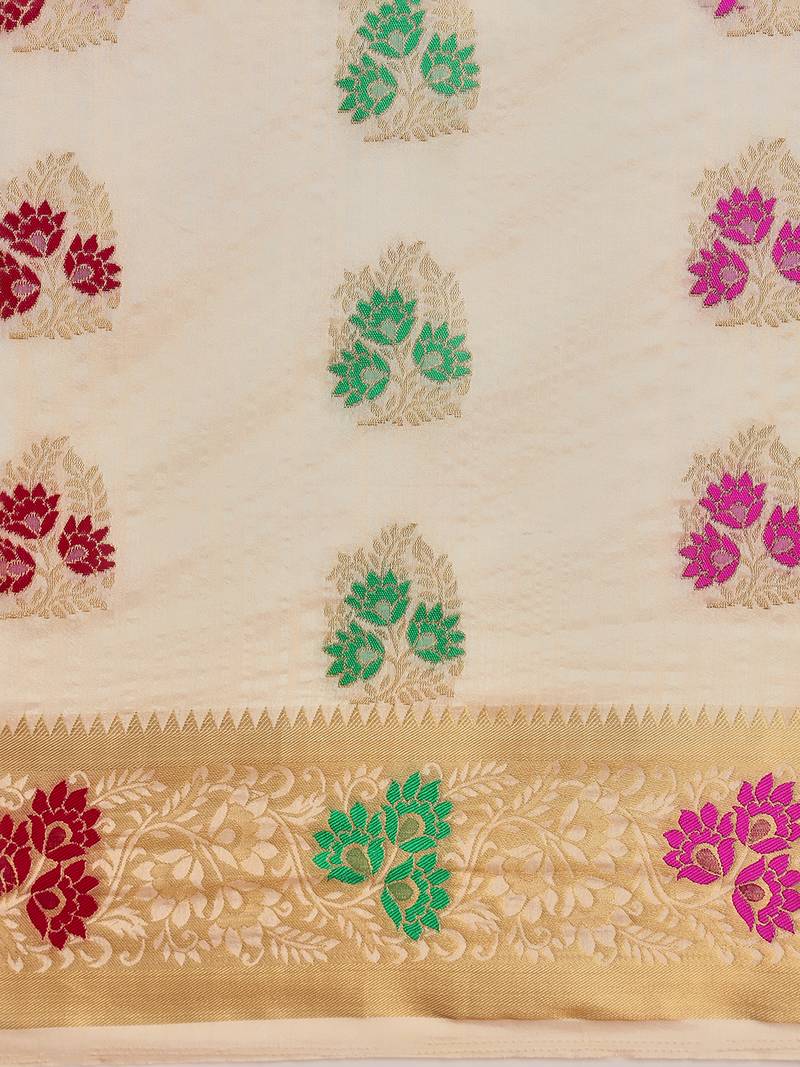 | Product Description | Cream Color Traditional Saree, With Woven Zari Border With Meena Motif All Over, Has Zari Woven Border And Pallu And Tussel Work At The End , Comes With Cream Color Running Unstiched Blouse (Included In Sarees Length 5.40 Mtr+.80 Cm) |