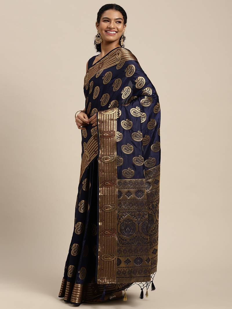 | Product Name | Navy Blue Woven Art Silk Saree With Blouse | |