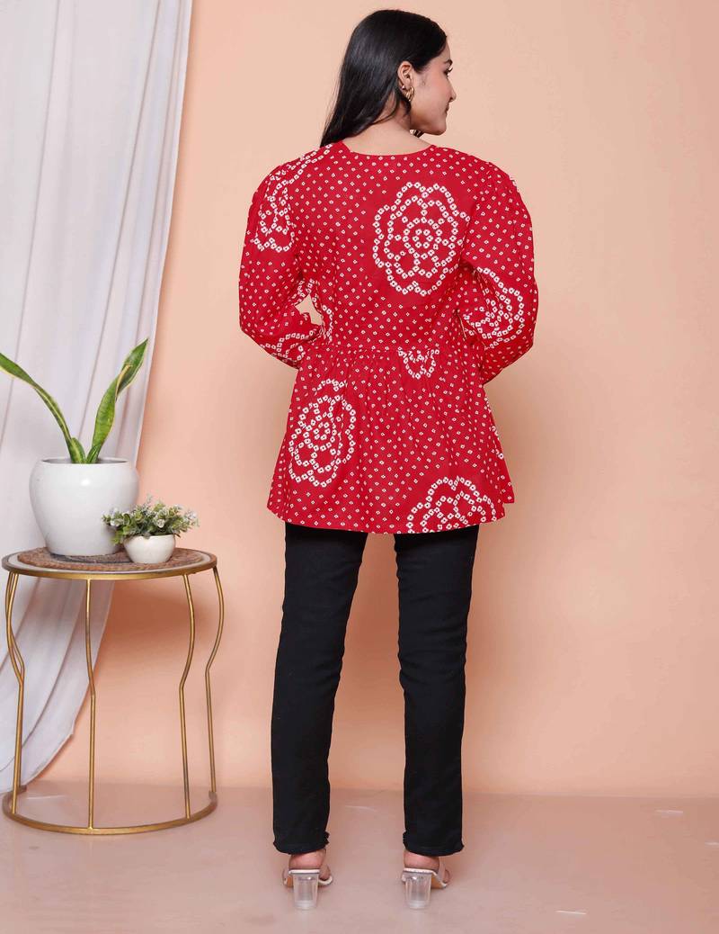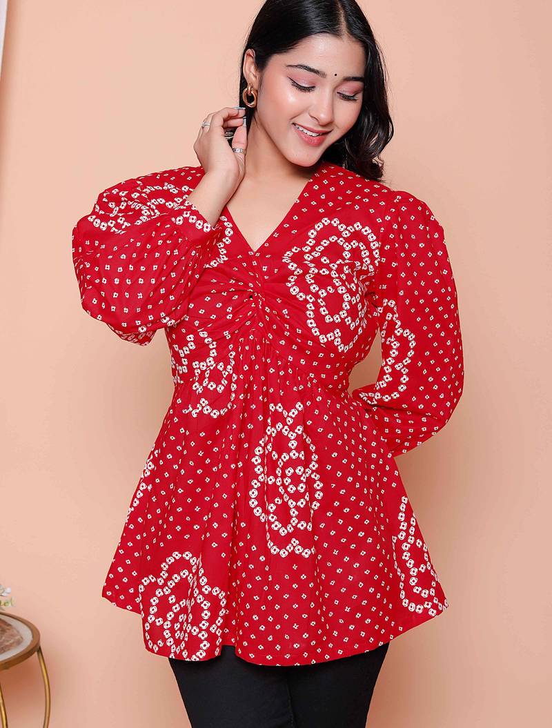 | Product Name | Red Bandhani Printed Cotton Butterfly Top | |