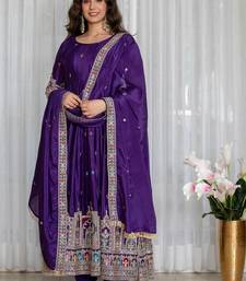 Pruple chinon silk party wear embroidery salwar suit set stitched