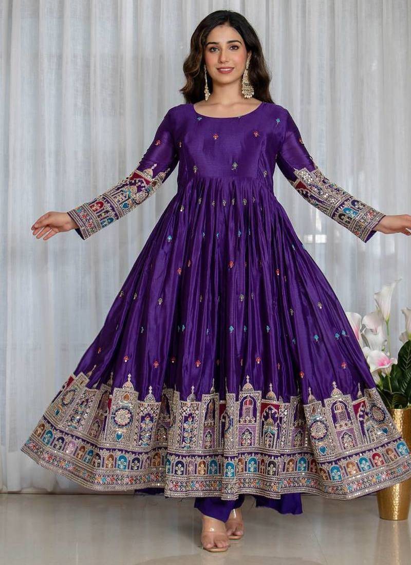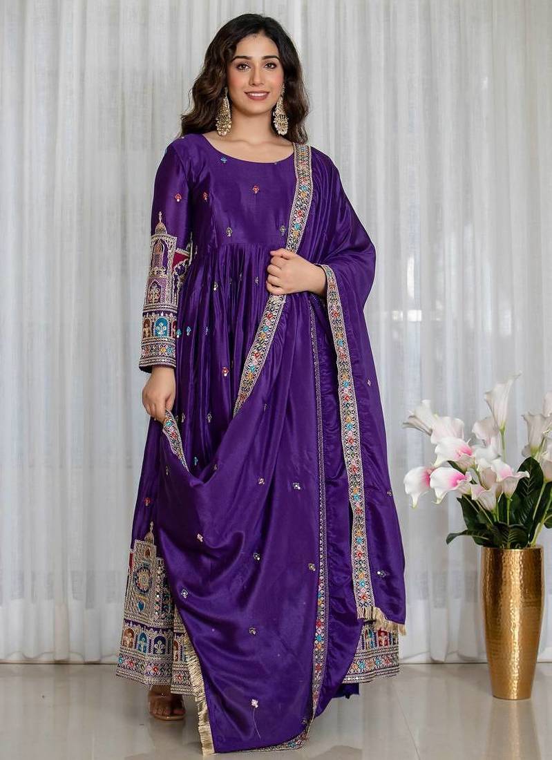 | Product Name | Pruple Chinon Silk Party Wear Embroidery Salwar Suit Set | |