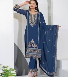 Navy blue georgette party wear embroidery suit set stitched