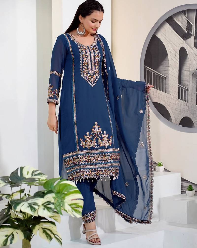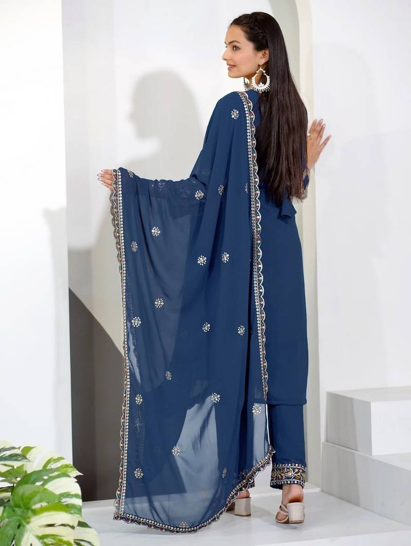 | Product Name | Navy Blue Georgette Party Wear Embroidery Suit Set | |