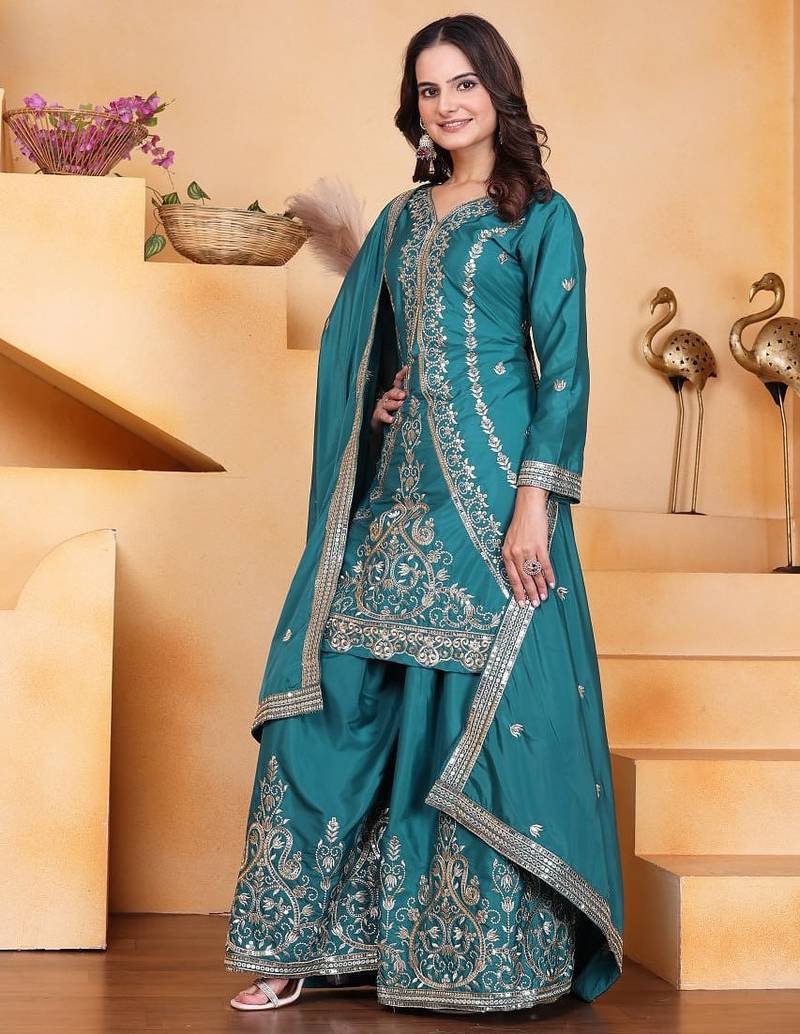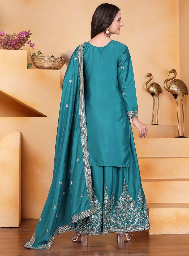 | Product Name | Sky Green Crep Silk Party Wear Embroidery Suit Set | |