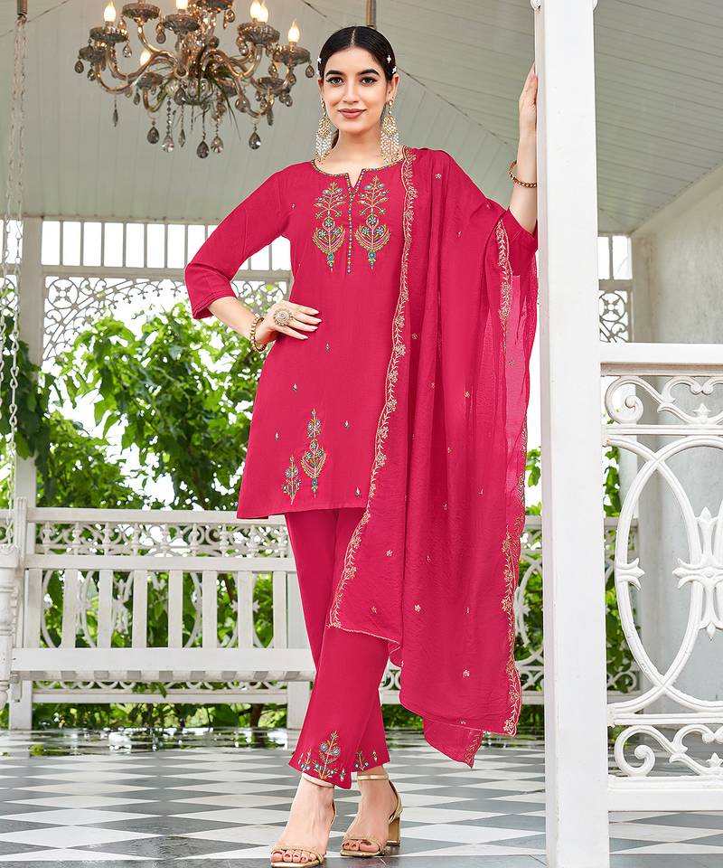 | Product Name | Women Embroidered Short Kurta With Palazzo & With Dupatta | |