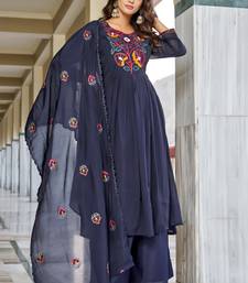 Women floral embroidered empire thread work dhabu cotton kurta pant with dupatta