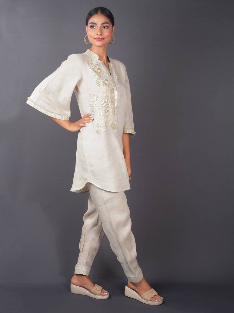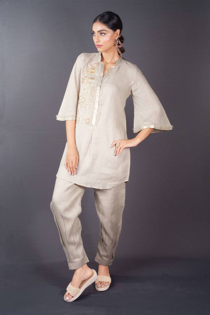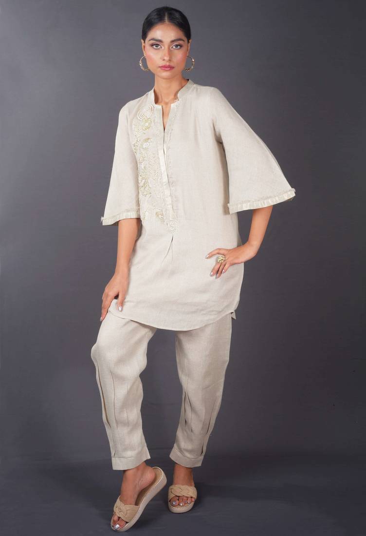 | Product Name | Beige Embroidered Linen Kurta Set | |