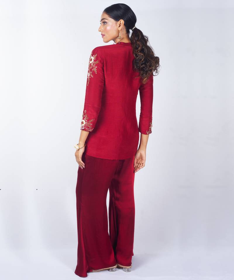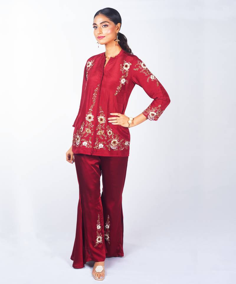 | Product Name | Red Embroidered Linen Kurta Set | |