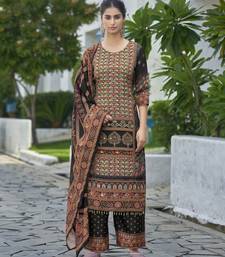 Black chinon chiffon abstract printed straight kurta with palazzo & printed dupatta stitched