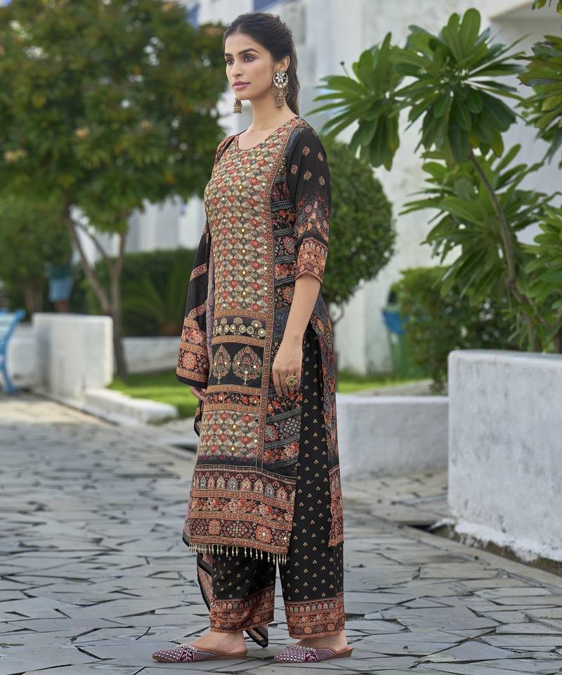 Product Name | Black Chinon Chiffon Abstract Printed Straight Kurta With Palazzo & Printed Dupatta | |