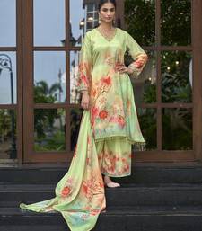 Green chinon chiffon floral printed a-line kurta with palazzo & printed dupatta stitched