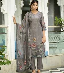Grey ho organza floral printed straight kurta with pant & printed dupatta stitched
