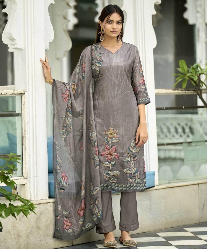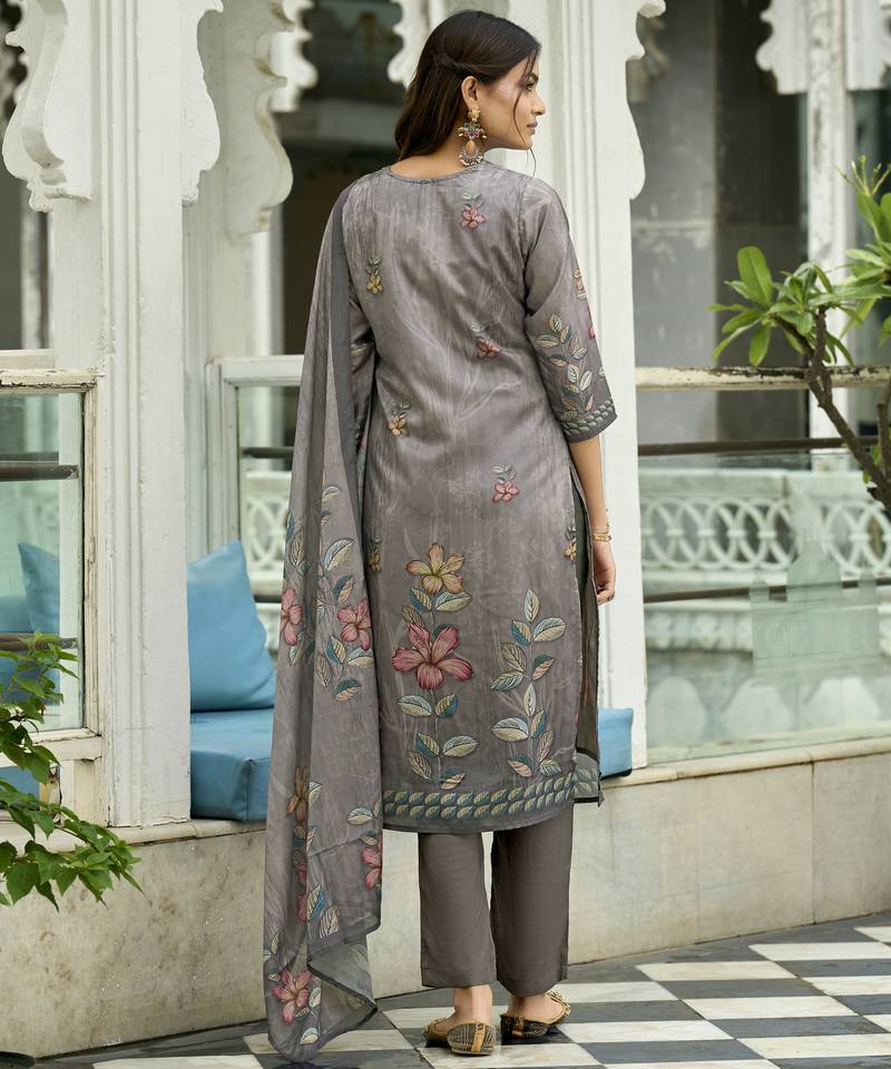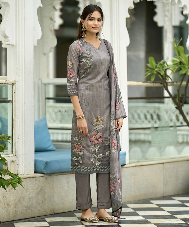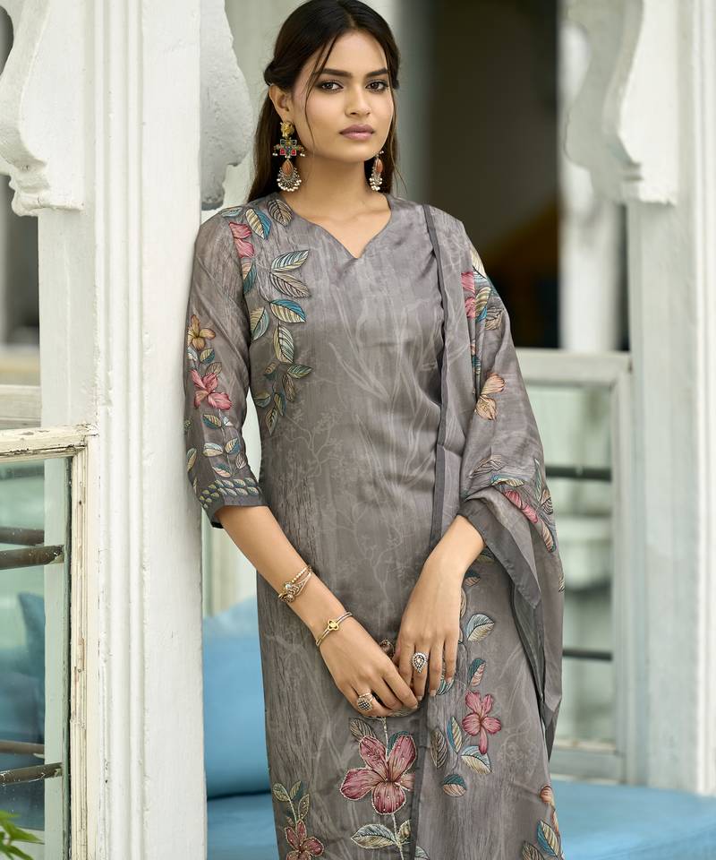 Product Name | Grey Ho Organza Floral Printed Straight Kurta With Pant & Printed Dupatta | |