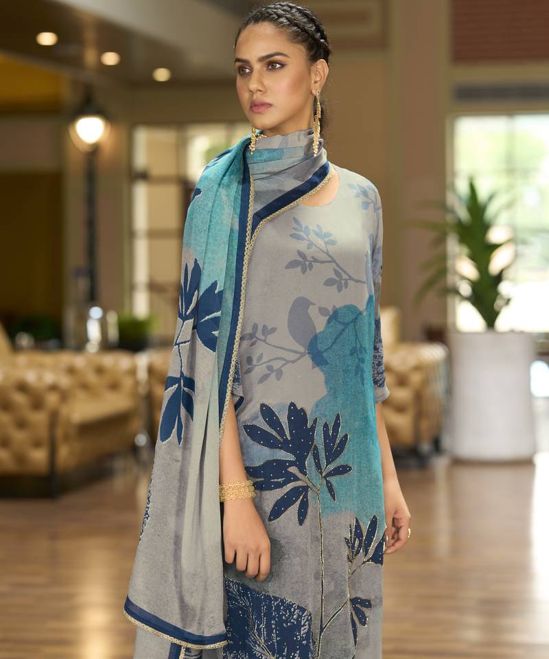 Product Name | Grey Pure Chinon Chiffon Floral Printed Straight Kurta With Comfort Fitting Pant & Printed Dupatta | |
