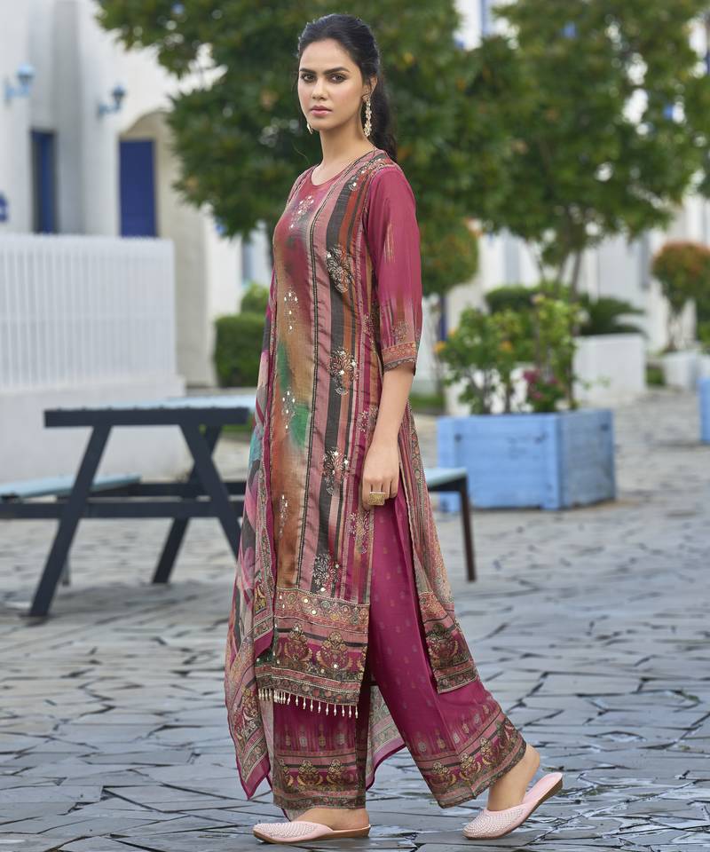 Product Name | Multicolor Chinon Chiffon Abstract Printed Straight Kurta With Palazzo & Printed Dupatta | |