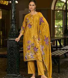 Mustard pure ho organza floral printed straight kurta with comfort fitting pant & printed dupatta stitched