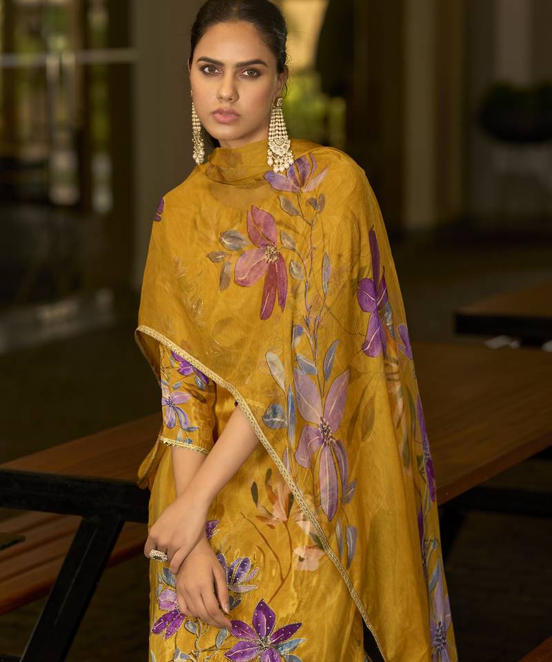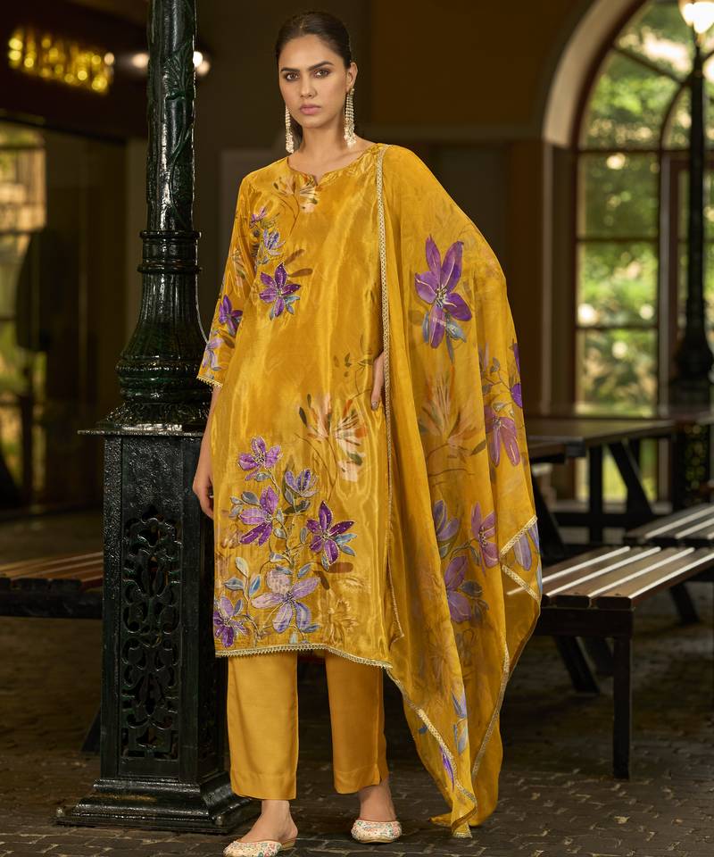 Product Name | Mustard Pure Ho Organza Floral Printed Straight Kurta With Comfort Fitting Pant & Printed Dupatta | |