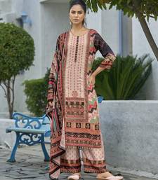 Peach chinon chiffon abstract printed straight kurta with palazzo & printed dupatta stitched