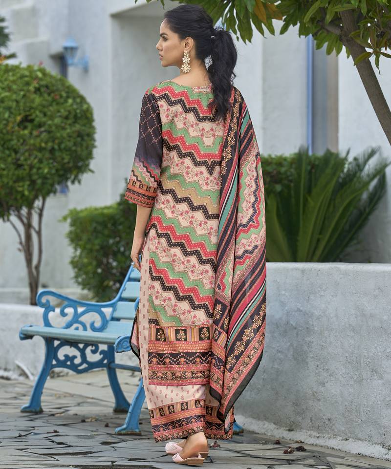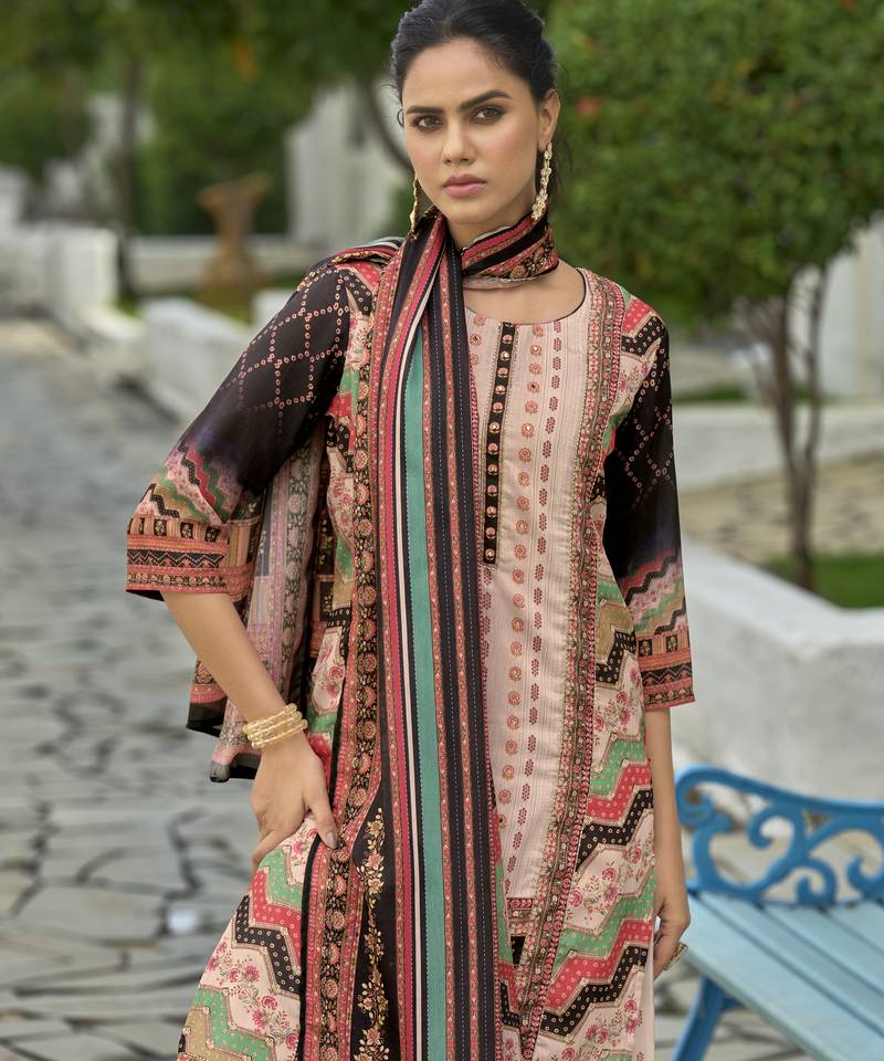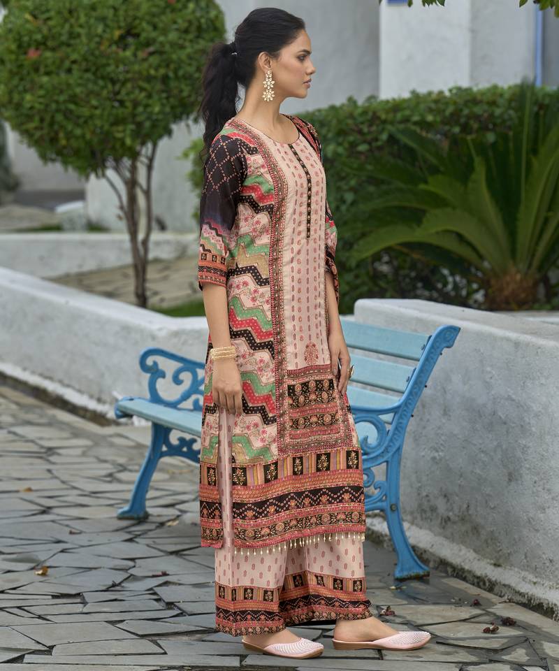 Product Name | Peach Chinon Chiffon Abstract Printed Straight Kurta With Palazzo & Printed Dupatta | |