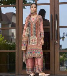 Pink chinon chiffon floral printed a-line kurta with palazzo & printed dupatta stitched