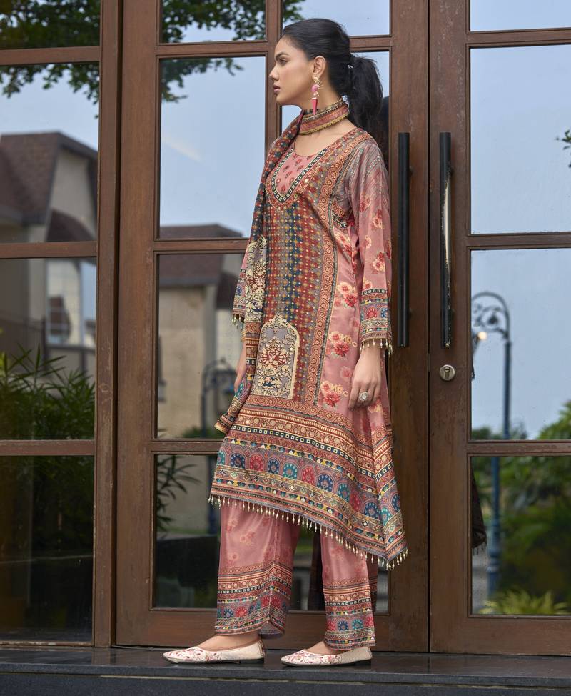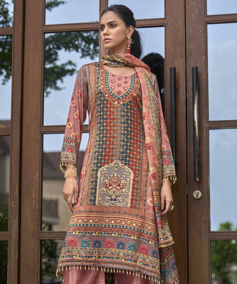 Product Description | Graceful Pink Chinon Chiffon Set Featuring A Floral Printed Calf Length Kurta Adorned With Mirror Work And Delicate Bead Embellishments. Paired With A Fully Elasticated Printed Palazzo And A Matching Chinon Chiffon Printed Dupatta With Lace Border, This Ensemble Exudes Charm And Sophistication. Perfect For Festive Occasions, Parties, And Celebrations, It Offers A Beautiful Blend Of Comfort And Timeless Elegance. |