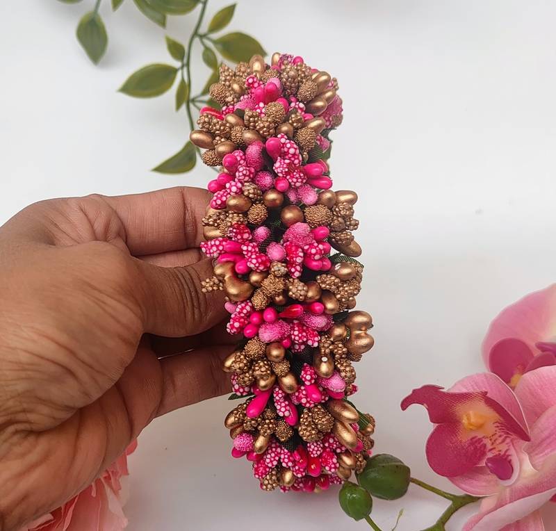 | Product Name | Pink And Gold Pollens Bridal Gajra | |