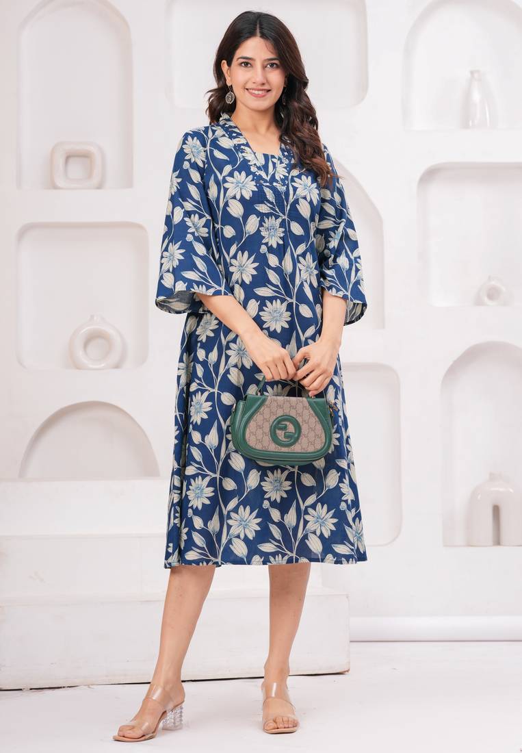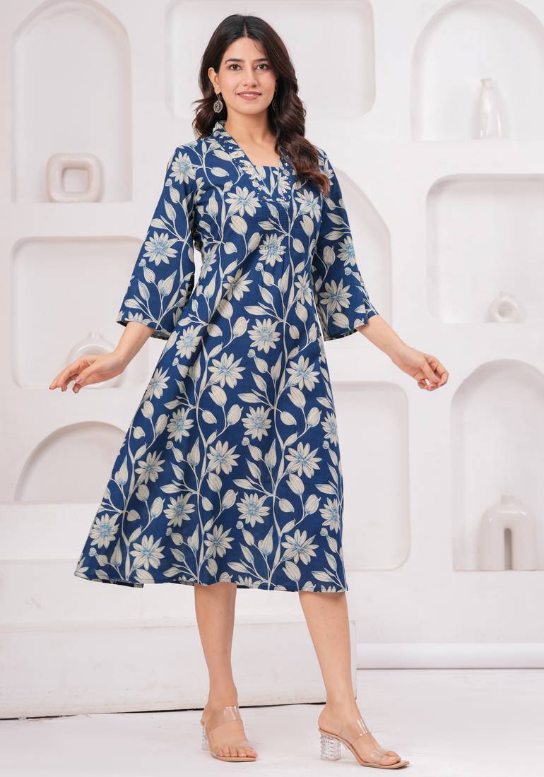 | Product Description | Mona Prints Printed Blue Pure Cotton Regular Ethnic Dress |