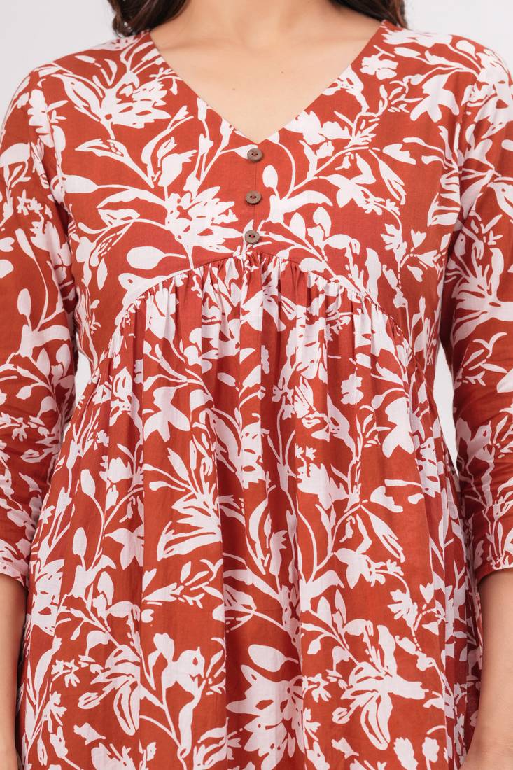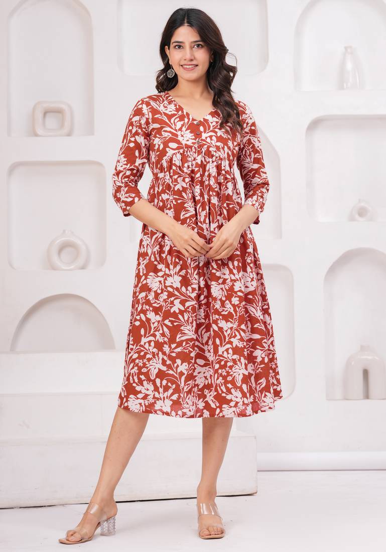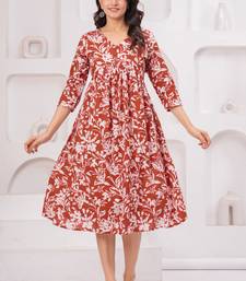 | Product Description | Mona Prints Printed Brown Pure Cotton Regular Ethnic Dress |