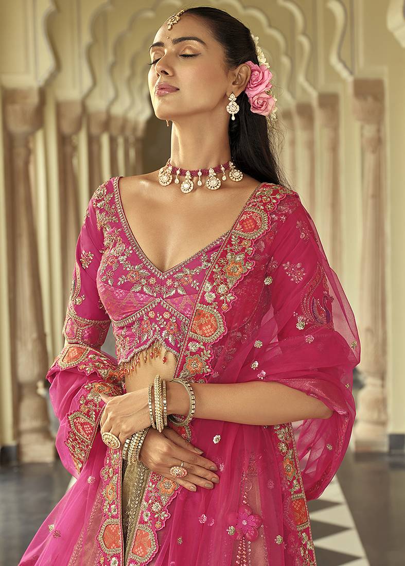 | • | Dupatta | : | Color- Rani Pink / Fabric- Net |