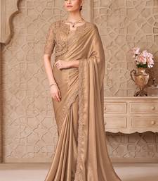 Beige shimmer satin georgette fancy designer saree with jacket style blouse