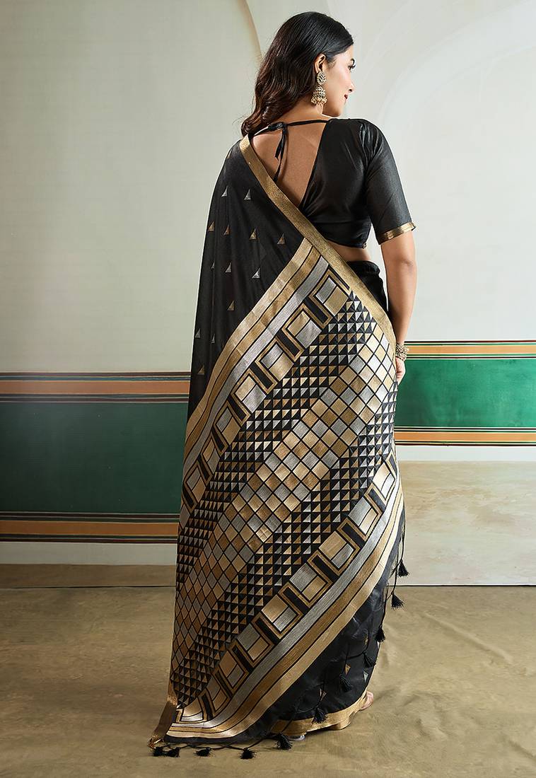 Product Description | Its A Master Piece In Its Class Glorifying Your Timeless Beauty. Be Ready To Slip In The Comfort Zone Of Black Silk Blend Contemporary Saree. The Lovely Weaving Work Throughout The Attire Is Awe Inspiring. Comes With Matching Blouse. (Slight Variation In Color, Fabric & Work Is Possible. Model Images Are Only Representative.) |