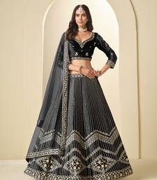 | Product Description | Bring Out The True Diva In You And Reinvent Your True Self. This Black Velvet A Line Lehenga Choli Is Accenting The Gorgeous Feeling. The Lovely Embroidered And Sequins Work Throughout The Attire Is Awe Inspiring. Comes With Matching Choli And Dupatta. (Slight Variation In Color, Fabric & Work Is Possible. Model Images Are Only Representative.) |