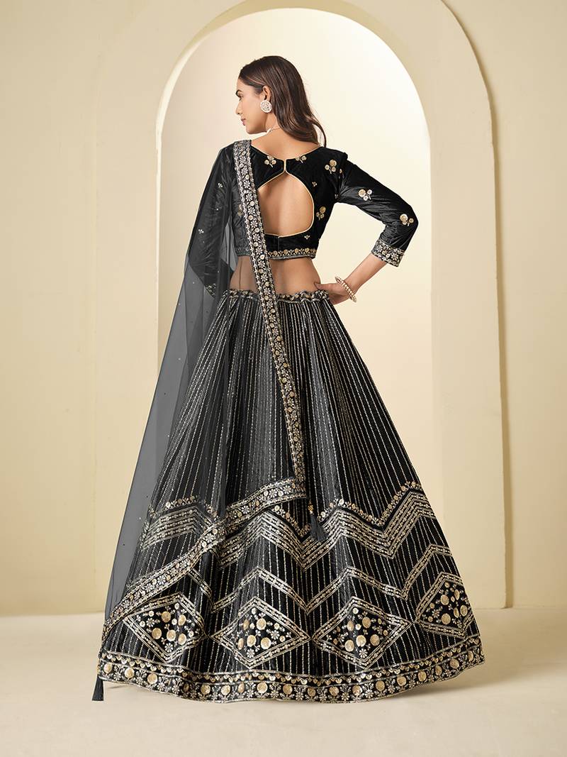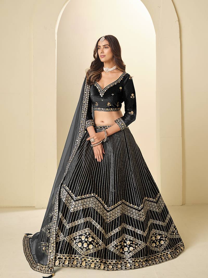 | Product Name | Black Velvet Embroidered Sequins Work A Line Lehenga Choli | |
