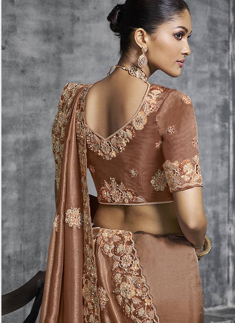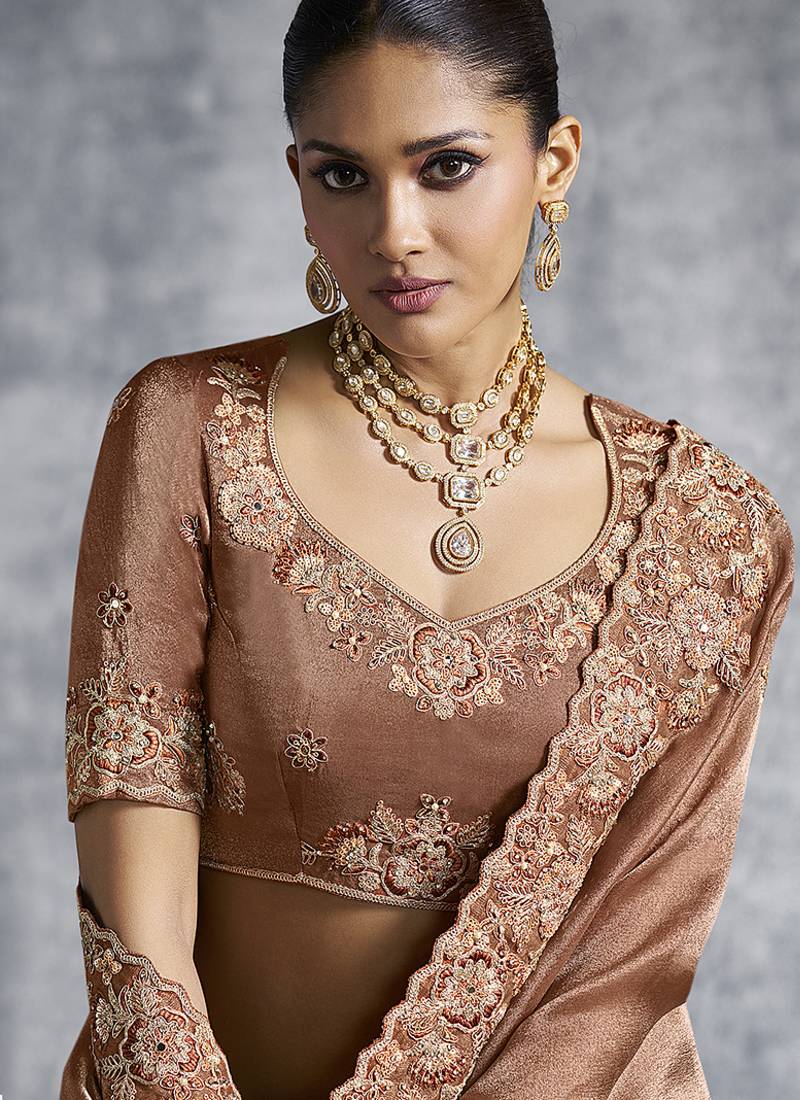 Product Name | Brown Tissue Traditional Saree With Embroidered, Resham And Thread Work For Ceremonial | |