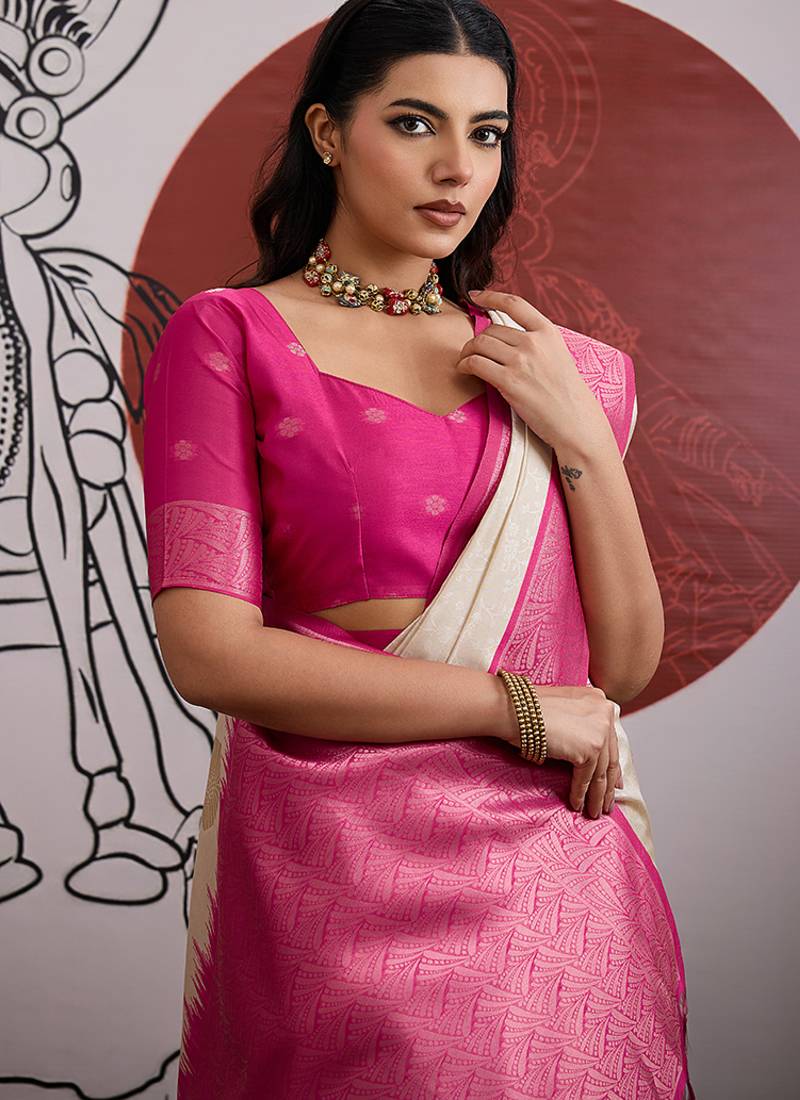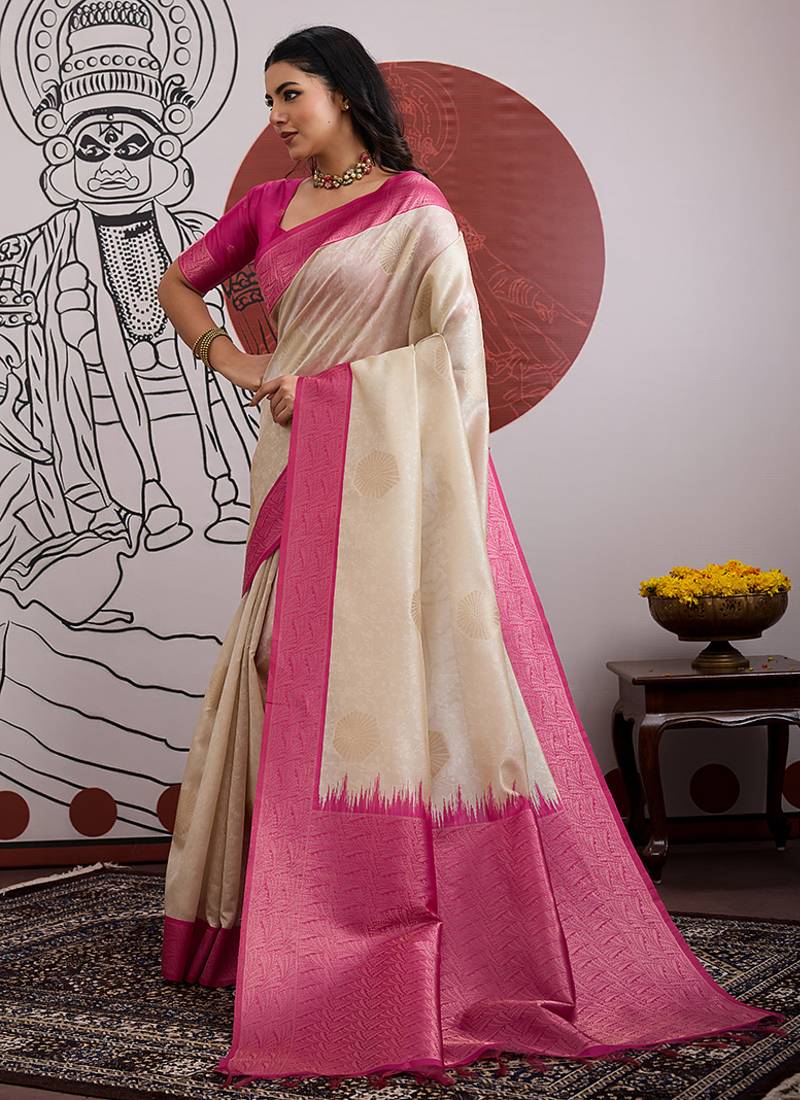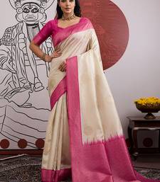 | Product Name | Cream And Rani Pink Handloom Weaving Silk Blend Saree | |