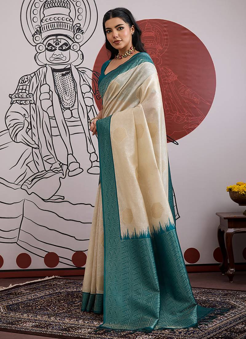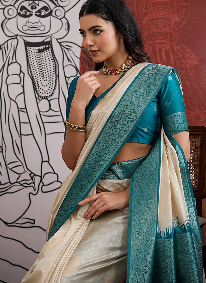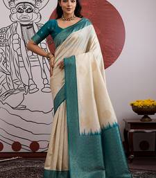| Product Name | Cream And Teal Handloom Weaving Art Silk Festival Trendy Saree | |