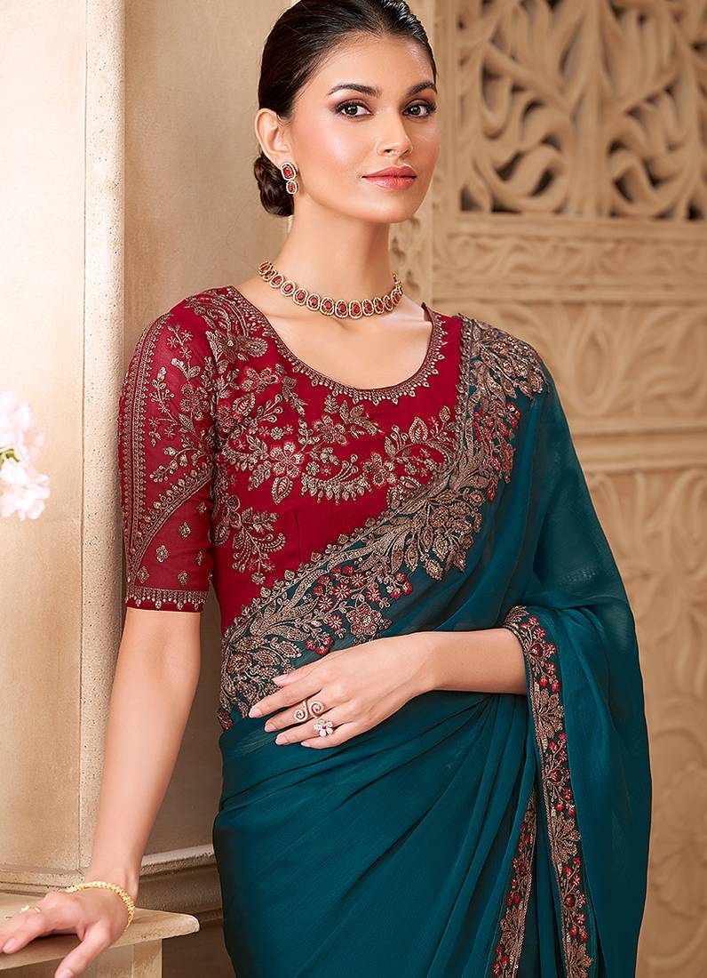 | Product Name | Dark Teal Color Satin Georgette Embroidered Fancy Designer Saree | |