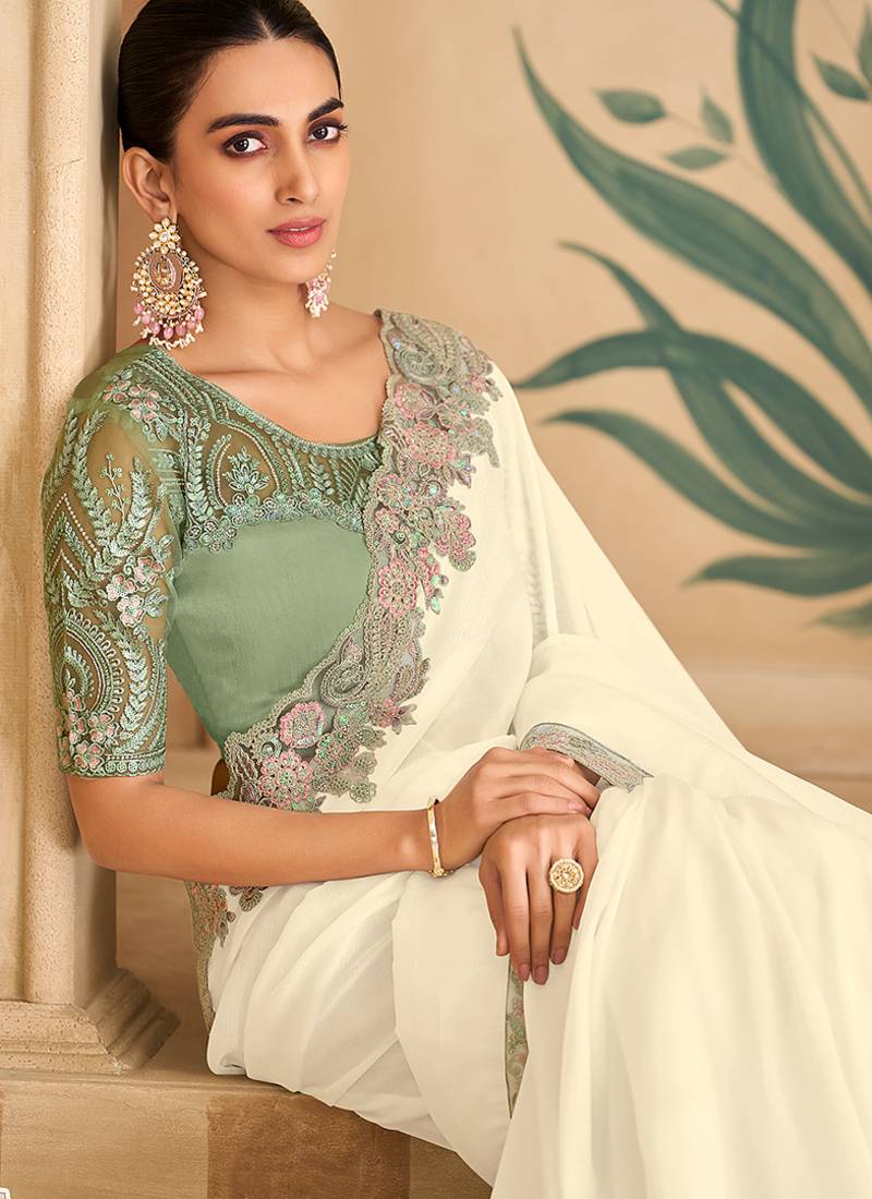 | • | Saree | : | Color- Off White / Fabric- Faux Chiffon |