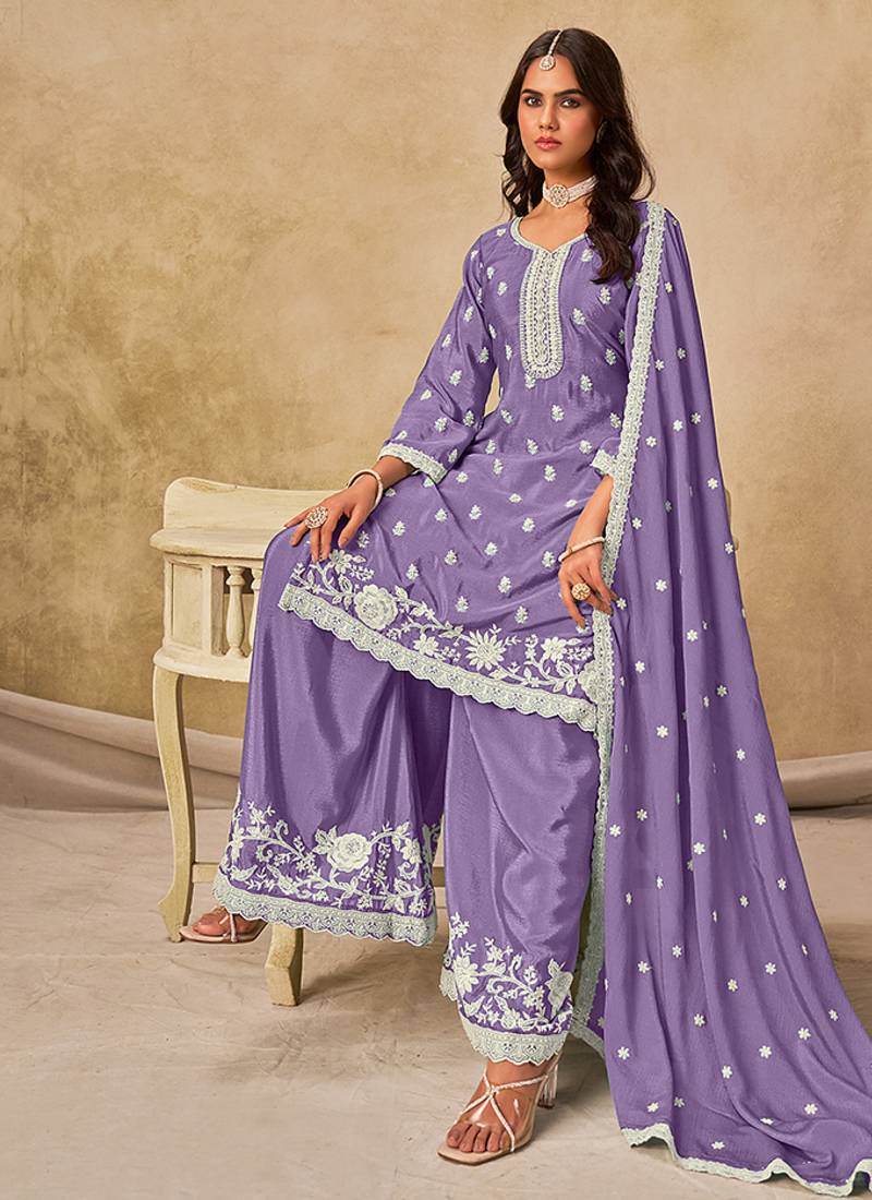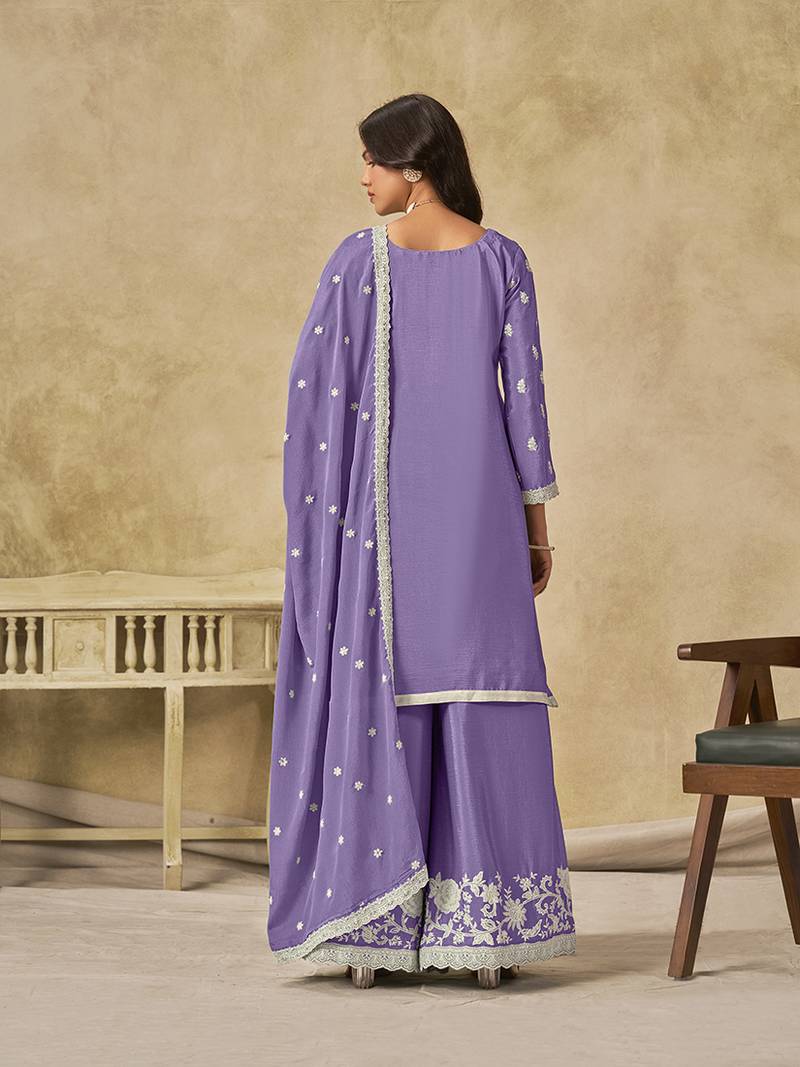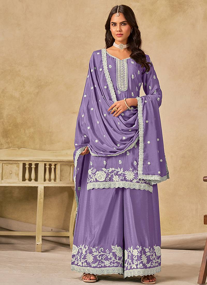 Product Name | Embroidered Lavender Chinon Silk Palazzo Salwar Suit | |