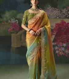 Fancy fabric embroidered saree in multicolor