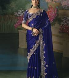 Fancy fabric embroidered saree in royal blue