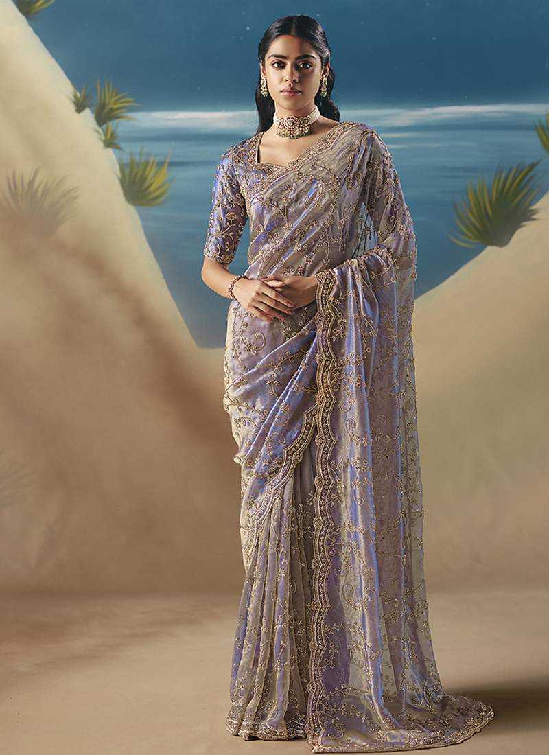 Product Name Lavender Fancy Fabric With Designer Embroidery Sequince Work Saree