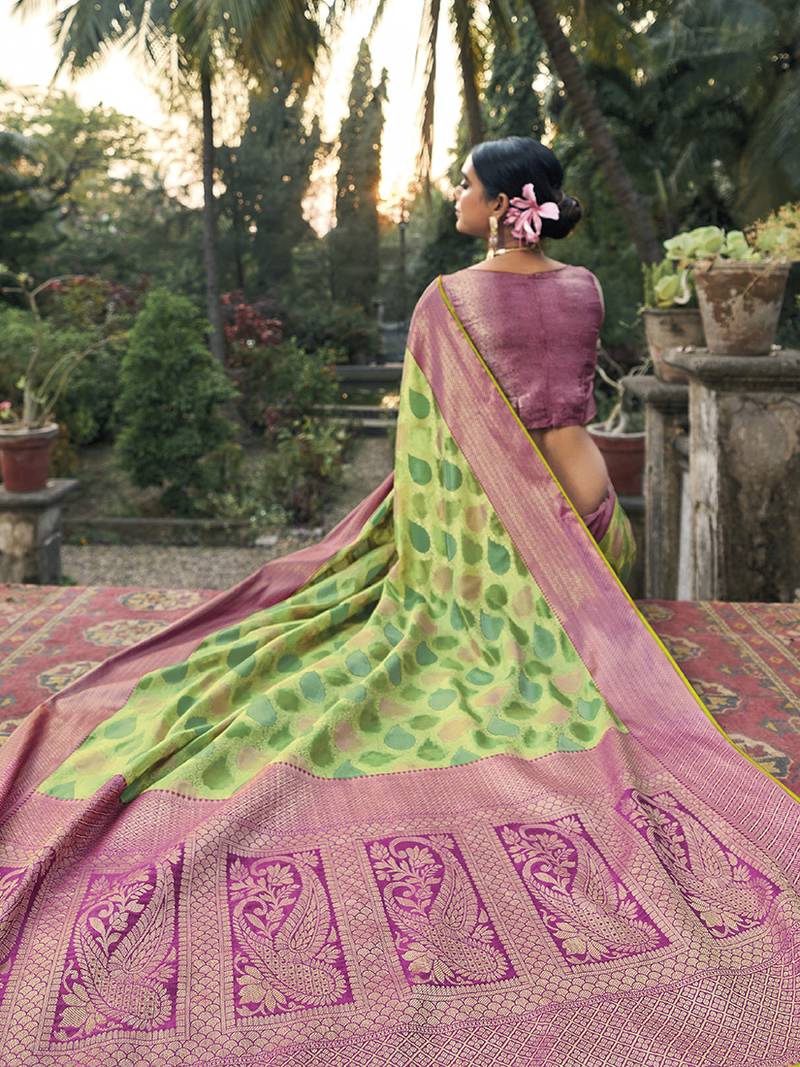light green woven silk saree with blouse