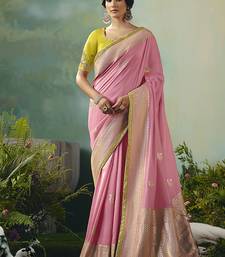 If You Are A Diva Who Loves To Turn Heads Wherever You Go And This Delightful Drape Is A Must Have Item For Your Closet. Get The Simplicity And Grace With This Light Pink Viscose Dola Silk With Zari Weaving Embroidery Worked Classic Saree. This Lovely Attire Is Looking Extra Beautiful With Embelishment Of Embroidered Work. Comes With Unstiched Blouse. (Slight Variation In Color, Fabric & Work Is Possible. Model Images Are Only Representative.)