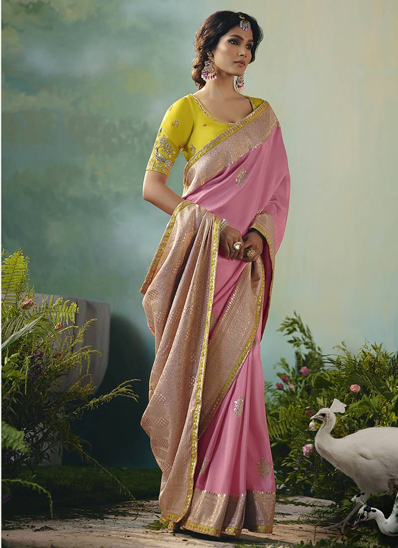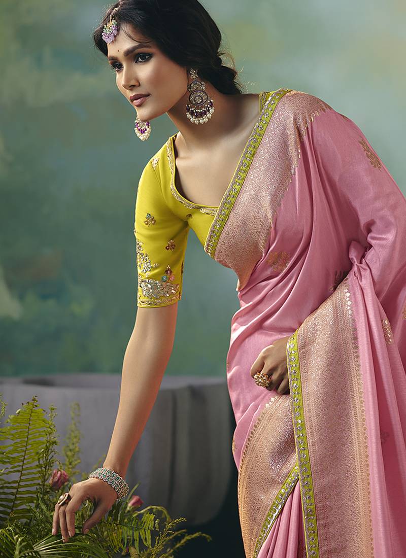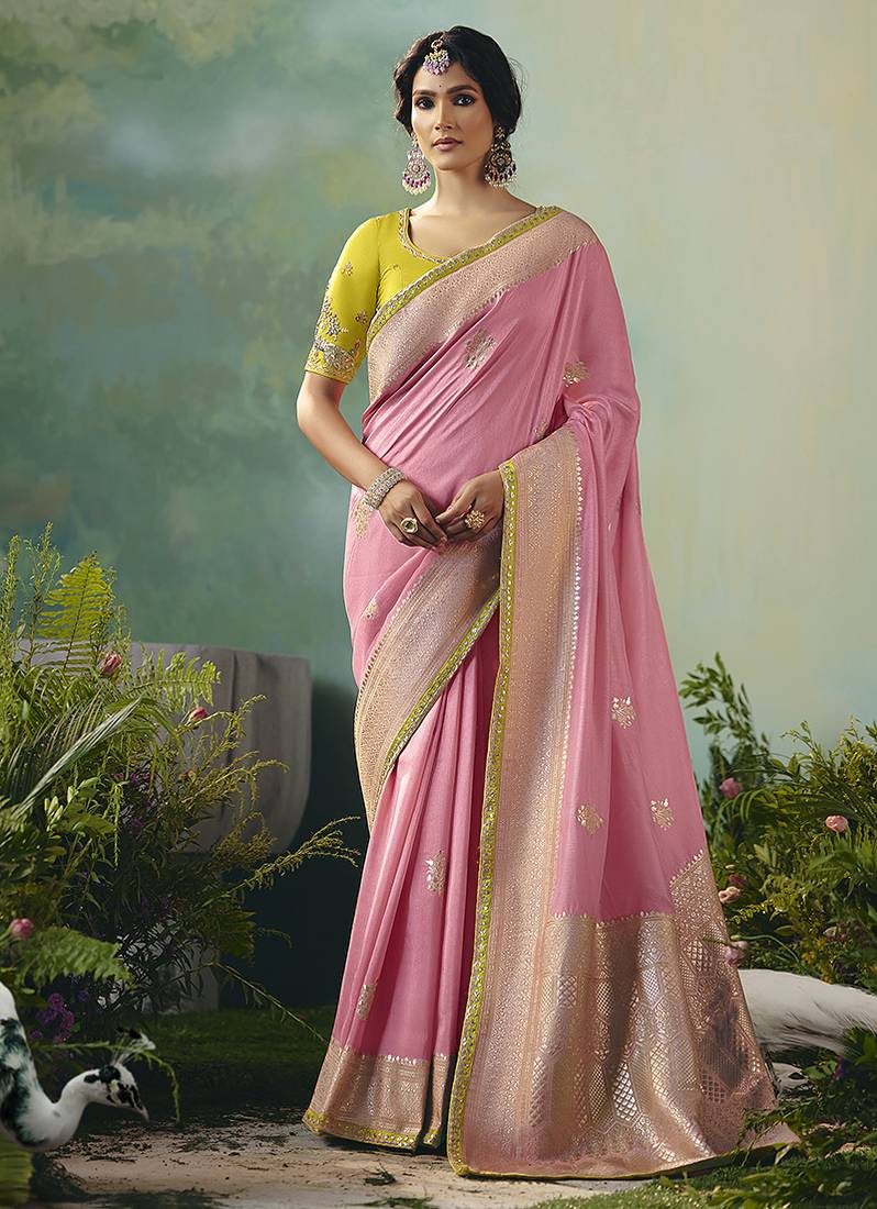 Product Name Light Pink Dola Viscose Silk Saree With Zari Weaving & Sequence Work Blouse
