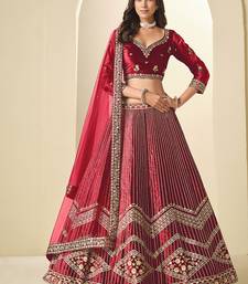 Bring Out The True Diva In You And Reinvent Your True Self. This Maroon Velvet A Line Lehenga Choli Is Accenting The Gorgeous Feeling. The Lovely Embroidered And Sequins Work Throughout The Attire Is Awe Inspiring. Comes With Matching Choli And Dupatta. (Slight Variation In Color, Fabric & Work Is Possible. Model Images Are Only Representative.)